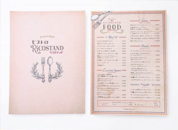 おしゃれなお店のイメージをそのままに、メニューブックにもこだわって、